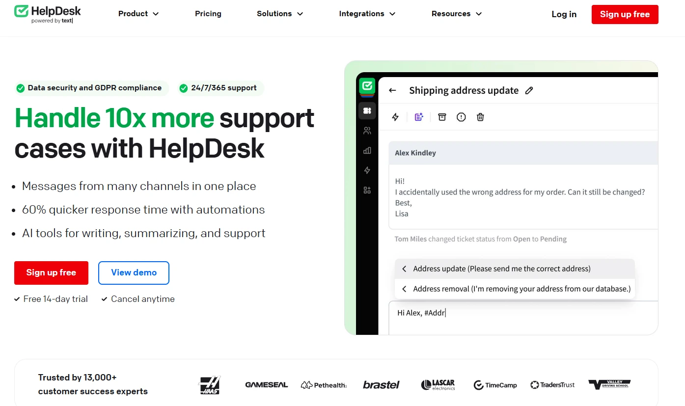 HelpDesk targets a broad but clearly support-centered B2B audience. Its core positioning is not “all-in-one business software,” but a browser-based ticketing system that helps teams organize customer messages, automate repetitive work, collaborate internally, and track service performance. The product is especially well matched to companies that already receive meaningful support volume through email, forms, chat, or other inbound channels and need a structured shared inbox / ticket workflow rather than ad hoc communication.