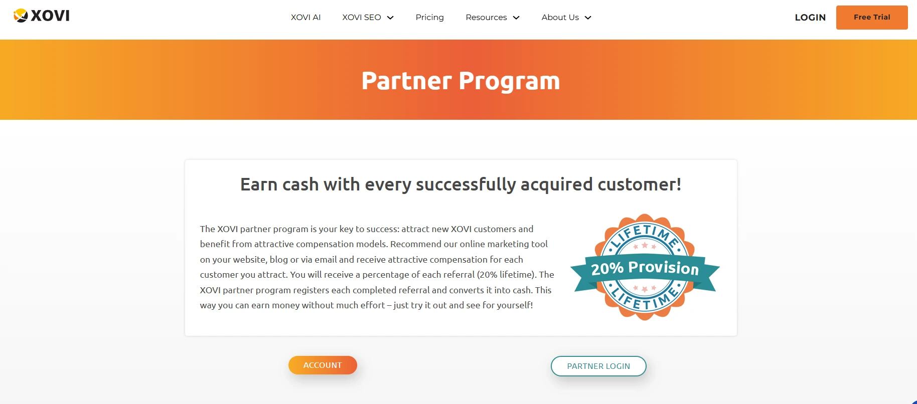 | Attribution model | Last cookie wins | If a visitor clicks your affiliate link and later clicks another affiliate’s XOVI link before registering, the later affiliate usually receives the commission. |